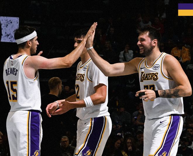 在缺少詹姆斯的情况下,东契奇和里夫斯承担起进攻重任,据统计本赛季当他俩在场时,进攻效率值高达124.6是NBA历史最高的。目前东契奇场均可以拿到37.1分9.4篮板9.1助攻,里夫斯则是30.3分9助攻,进攻火力还是非常强大的。本赛季湖人进攻效率很高,投篮命中率51.2%高居联盟第一,这还是在三分命中率只有33.9%的情况下。